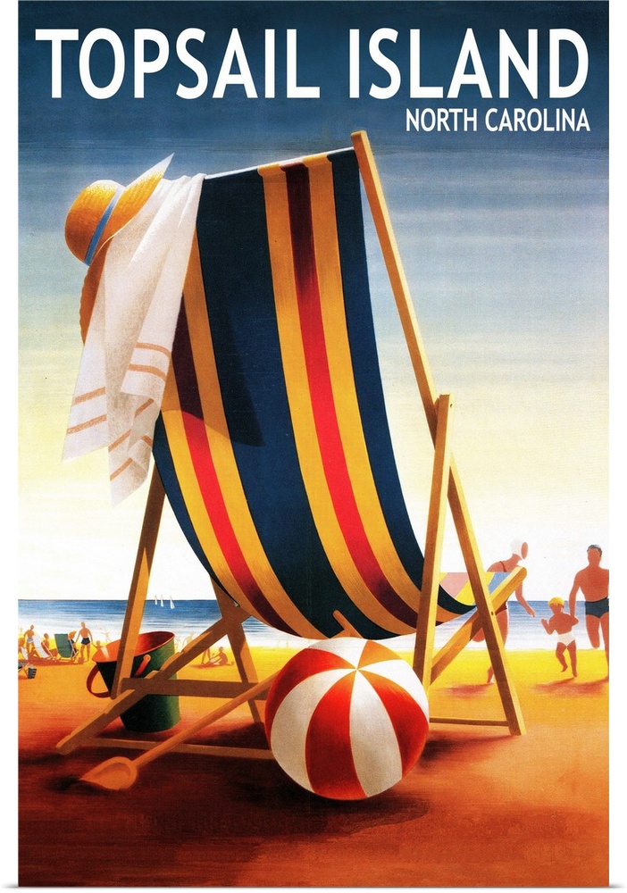 <p>Topsail Island, North Carolina, Beach Chair and Ball</p>