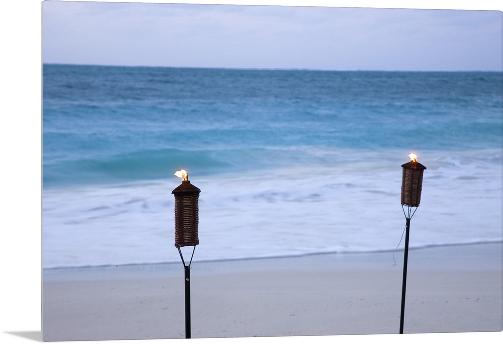 <p>Torches on beach.Grace Bay.Providenciales.Turks and Caicos</p>