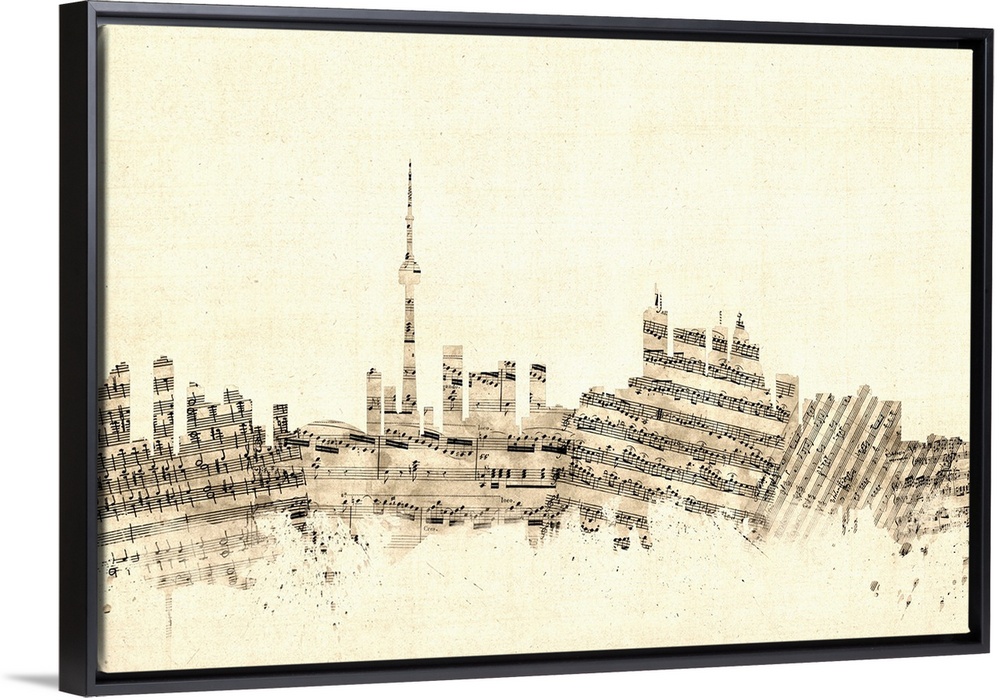 <p>Toronto skyline made of sheet music against a weathered beige background.</p>