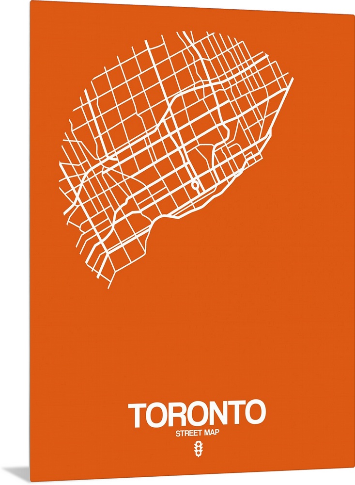 <p>Minimalist art map of the city streets of Toronto in orange and white.</p>