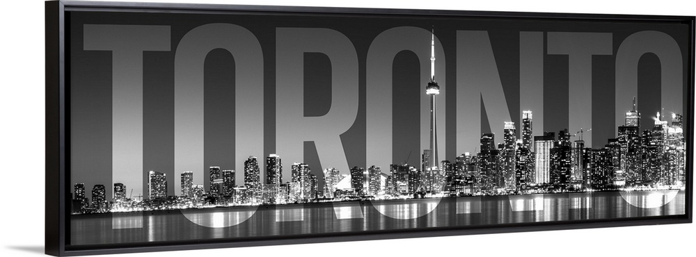<p>Transparent typography art overlay against a photograph of the Toronto city skyline.</p>