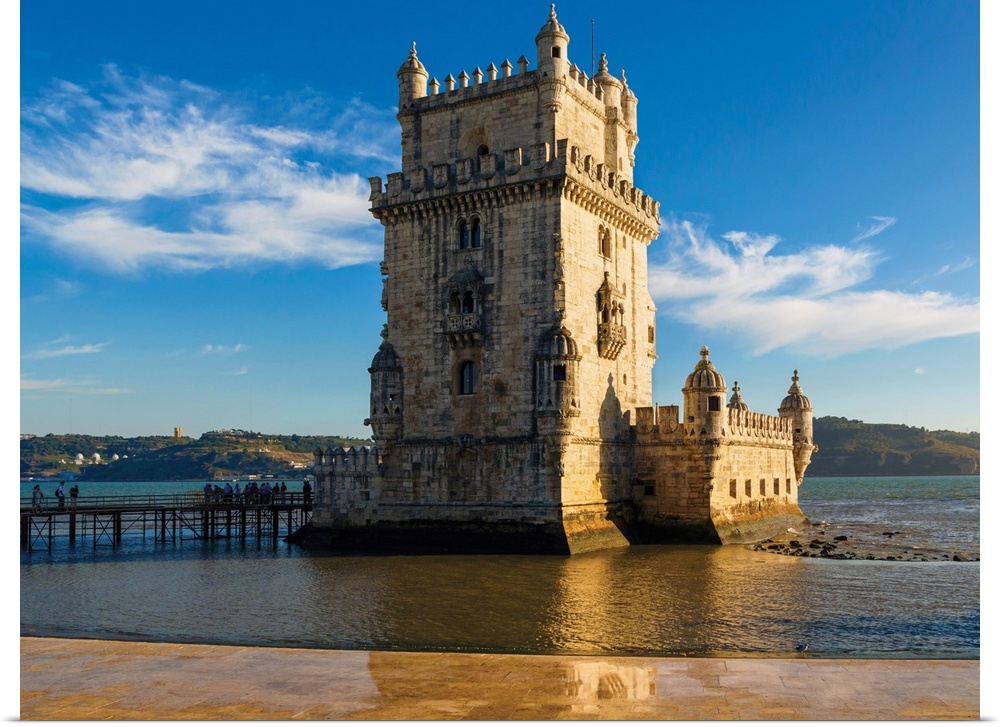 <p>Lisbon, Portugal. The 16th century Torre de Belem or Belem tower. The tower is an important example of Manueline architecture and a UNESCO World Heritage Site.</p>