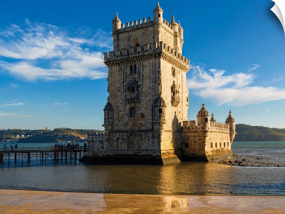 <p>Lisbon, Portugal. The 16th century Torre de Belem or Belem tower. The tower is an important example of Manueline architecture and a UNESCO World Heritage Site.</p>