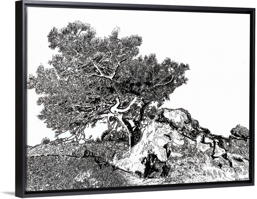 <p>Torrey Pine Tree, pen and ink drawing by Rd Riccoboni. Torrey pine trees is the rarest native pine in the United States. They grow on an eight mile stretch of San Diego coastline and on Santa Rosa Island off the California coast. Torrey Pines State Natural Reserve is located within San Diego city limits and yet remains one of the wildest stretches of land on our Southern California coast. Because of the efforts and foresight of the people in this area, 2000 acres of land are as they were before San Diego was developed -with the chaparral plant community, the rare and elegant Torrey pine trees, miles of unspoiled beaches, and a lagoon that is vital to migrating seabirds. One can imagine what California must have looked like to the early settlers, or to the Spanish explorers, or even to the first California residents here.</p>