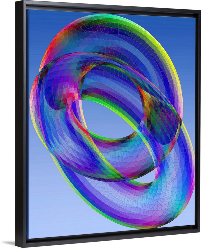 <p>Torus. Computer model of the three-dimensional projection (or shadow) of a 4-dimensional torus, a mathematical shape. The projection is partially transparent to show the intersecting structure. The torus does not actually pass through itself in the fourth dimension. The intersecting structure results from viewing it in only three dimensions. This model was created as an artwork by Professor Eric Heller.</p>