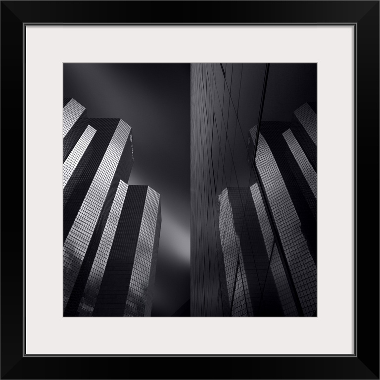 <p>A row of glass skyscrapers in Paris, reflected in the facade of a neighboring building.</p>