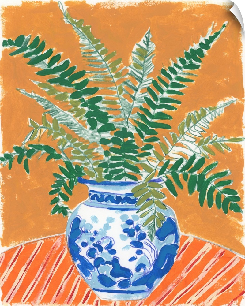 Art Bohemian Decorative Art Florals Ferns Orange Wall Art Painting June Erica Vess