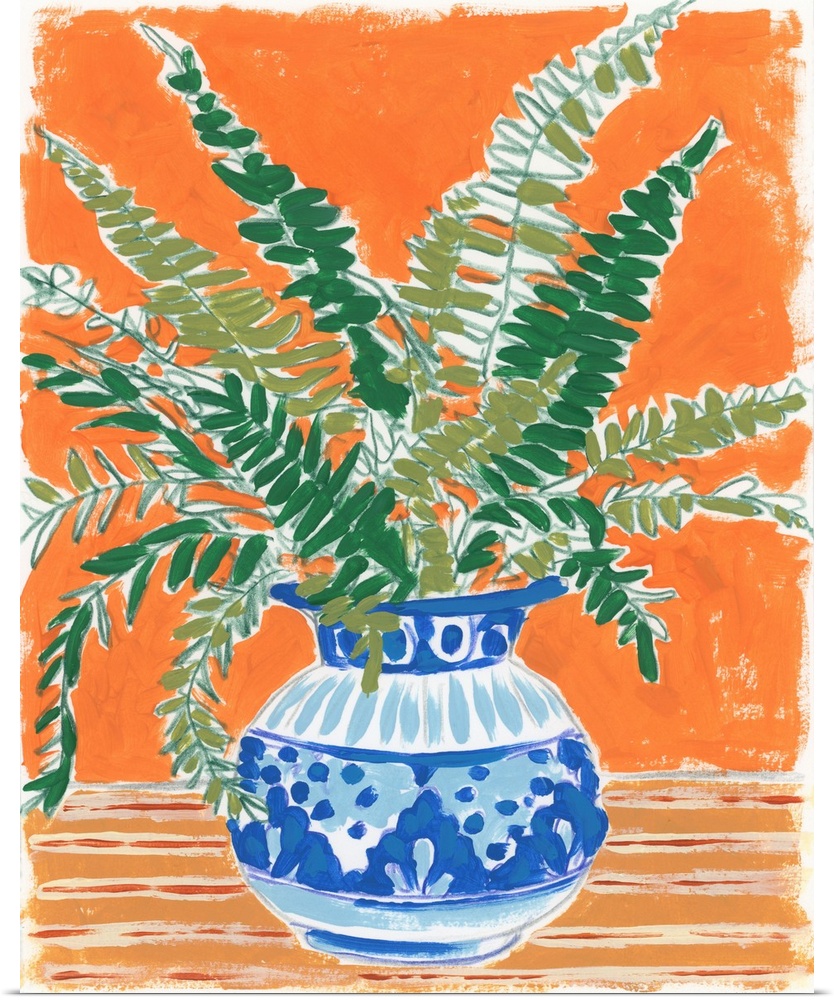 Art Bohemian Decorative Art Florals Ferns Orange Wall Art Painting June Erica Vess