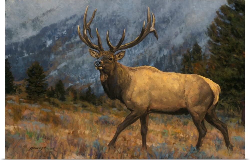 Art Rustic Contemporary Art Landscapes Mountains Man Cave Wall Art Outdoorsman Bruce Miller Painting Wildlife Moose and Elk