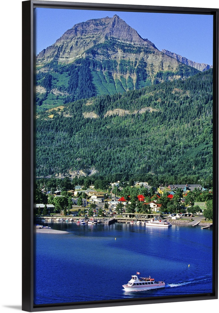 <p>Tour boat cruising Waterton Lake in Waterton Lakes National Park in Alberta Canada</p>