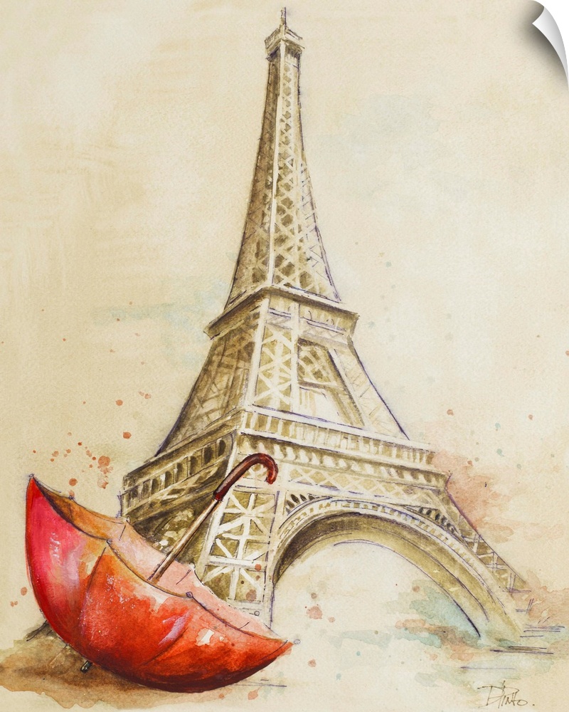 Umbrellas Art Decorative Art Painting Patricia Pinto Paris Eiffel Tower Watercolor