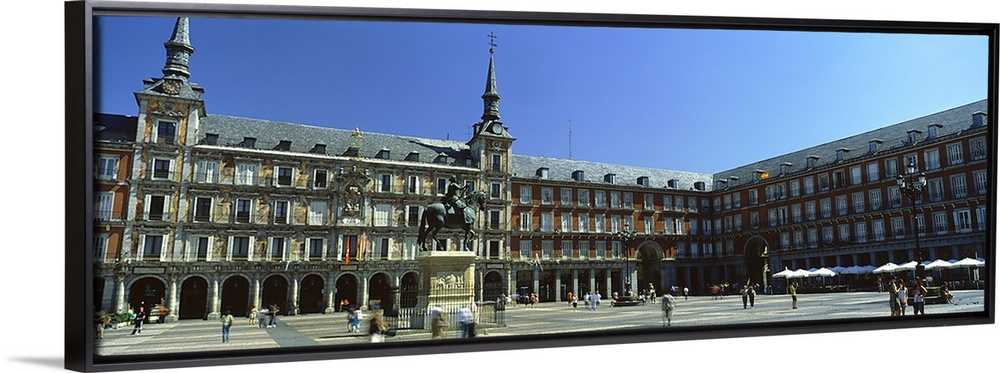 <p>Tourists at a palace, Plaza Mayor, Madrid, Spain</p>