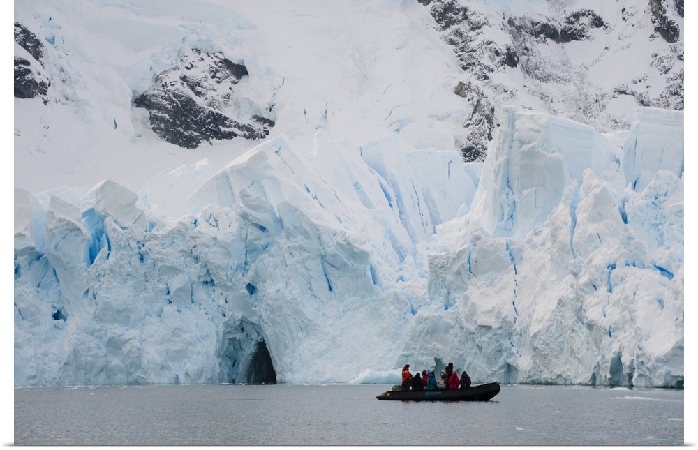 <p>Tourists at the edge of ice shelf, Skontorp Cove, Paradise Bay, Antarctica</p>