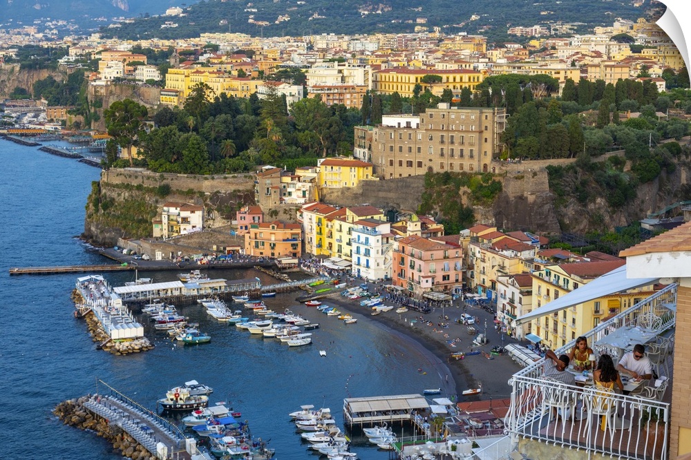 <p>Tourists dining with view of Sorrento, Bay of Naples, Campania, Italy, Mediterranean, Europe</p>