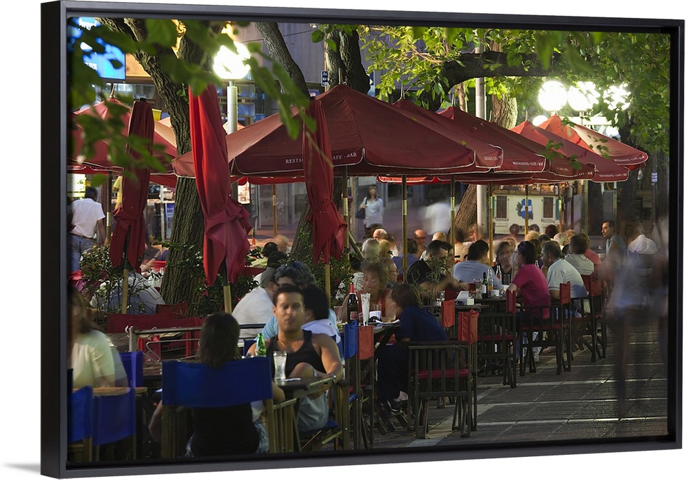 <p>Tourists sitting at a sidewalk cafe, Avenida Sarmiento, Mendoza, Argentina</p>