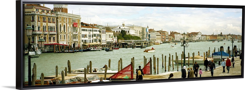 <p>Tourists walking along a canal, Grand Canal, Fondamenta Della Dogana Alla Salute, Dorsoduro, Venice, Veneto, Italy</p>