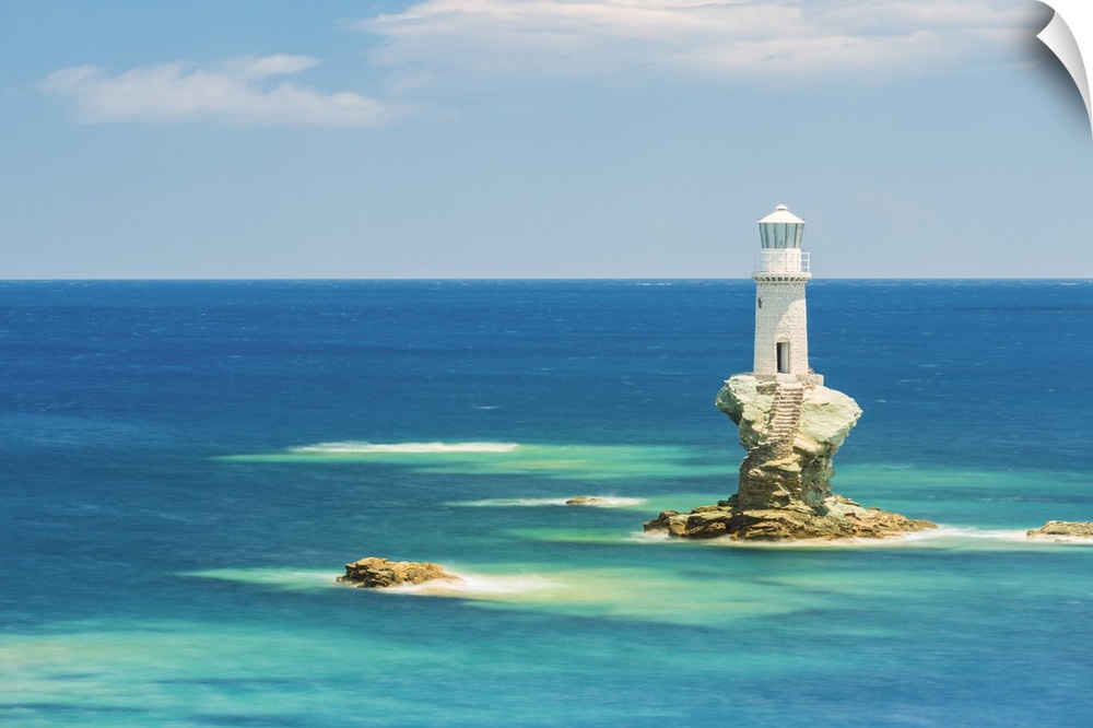 <p>Tourlitis lighthouse, the first automatic offshore lighthouse in Greece, Andros, Cyclades Archipelago, Greece, Europe.</p>