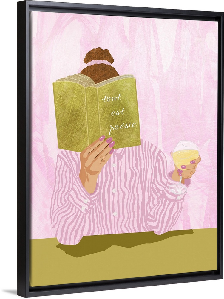 Art Contemporary Art Dopamine Decor Food and Drink Drinks Wine Graphic Art Sannel Larson People Pink Wall Art Reading and Literature