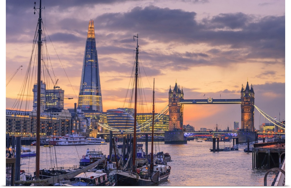 <p>Tower Bridge and The Shard along the River Thames at sunset.</p>