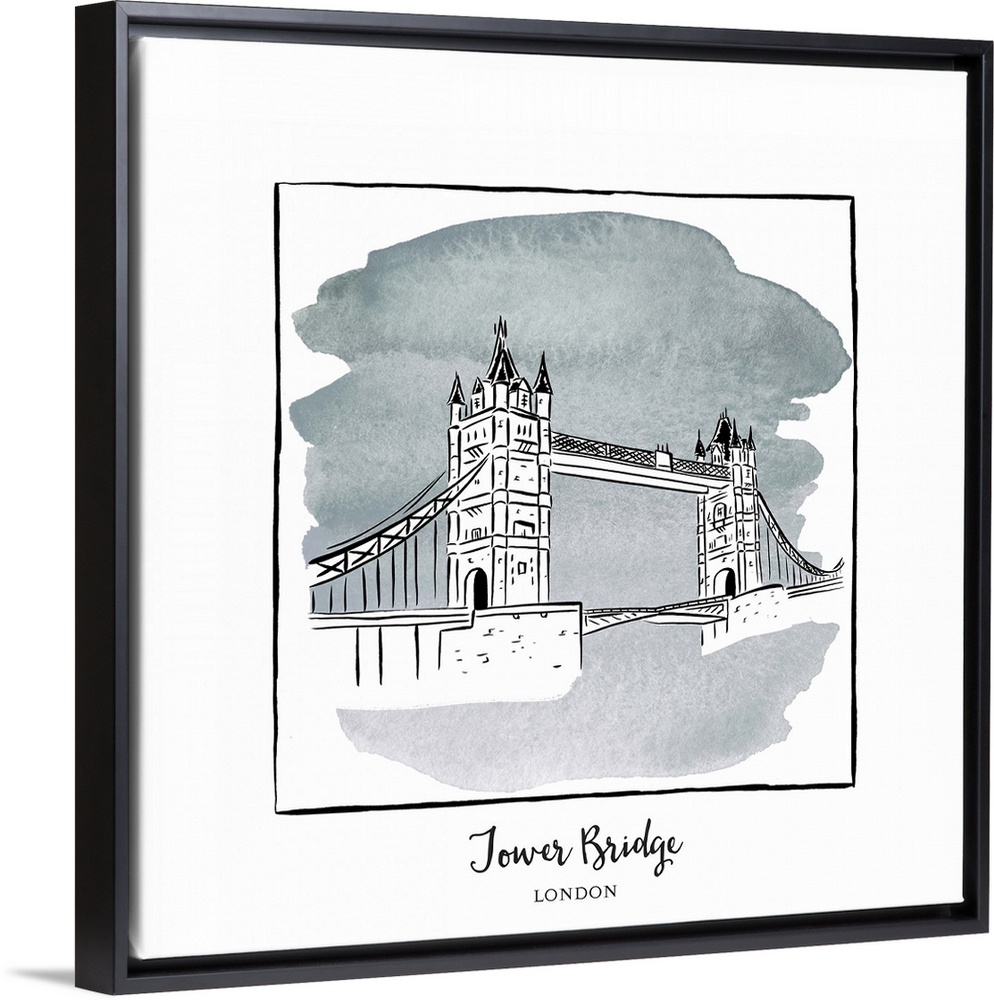<p>An ink illustration of the Tower Bridge in London, England, with a grey watercolor wash.</p>