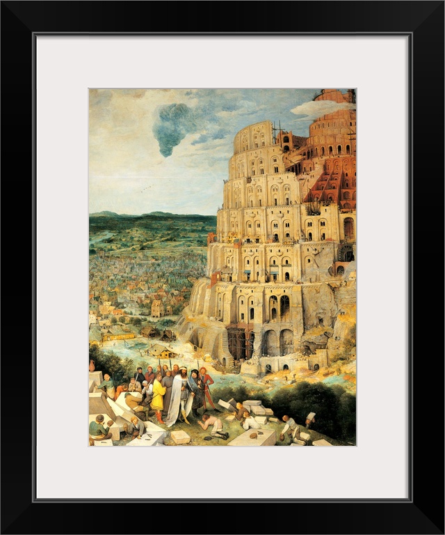 <p>The Tower of Babel, by Pieter il Vecchio Bruegel, 1563, 16th Century, oil on panel, cm 114 x 155 - Austria, Wien, Kunsthistorisches Museum. Detail. Tower of Babel architectural construction building homes ruins blocks stones foreshortened figures landscap</p>
