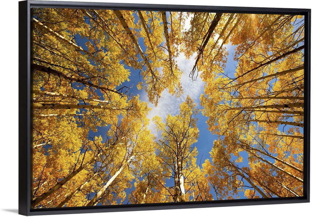 <p>View from below of the canopy of an aspen forest in the fall.</p>