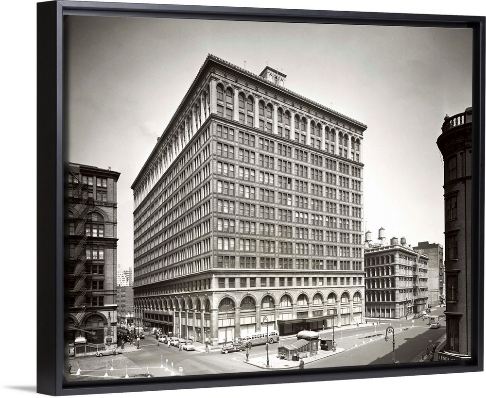 <p>New York City: Former John Wanamaker Manhattan Department Store Properties--large structure and smaller building to its right--which are being converted into a huge domestic and international hard goods display center for home and industry to be known as the Merchandise Mart of New York. This downtown trading center, including an adjacent fireproof warehouse structure, not shown, will provide more than 1,500,000 square feet of integrated space, covering nearly three square blocks, to be devoted to showrooms, permanent exposition hall, offices, warehouse and 600-car parking garage for the electrical supply, housewares, hardware, appliance, machine took and related industries. Extensive modernization of the property is to be started immediately by the Astor-Broadway Holding Corp.</p>