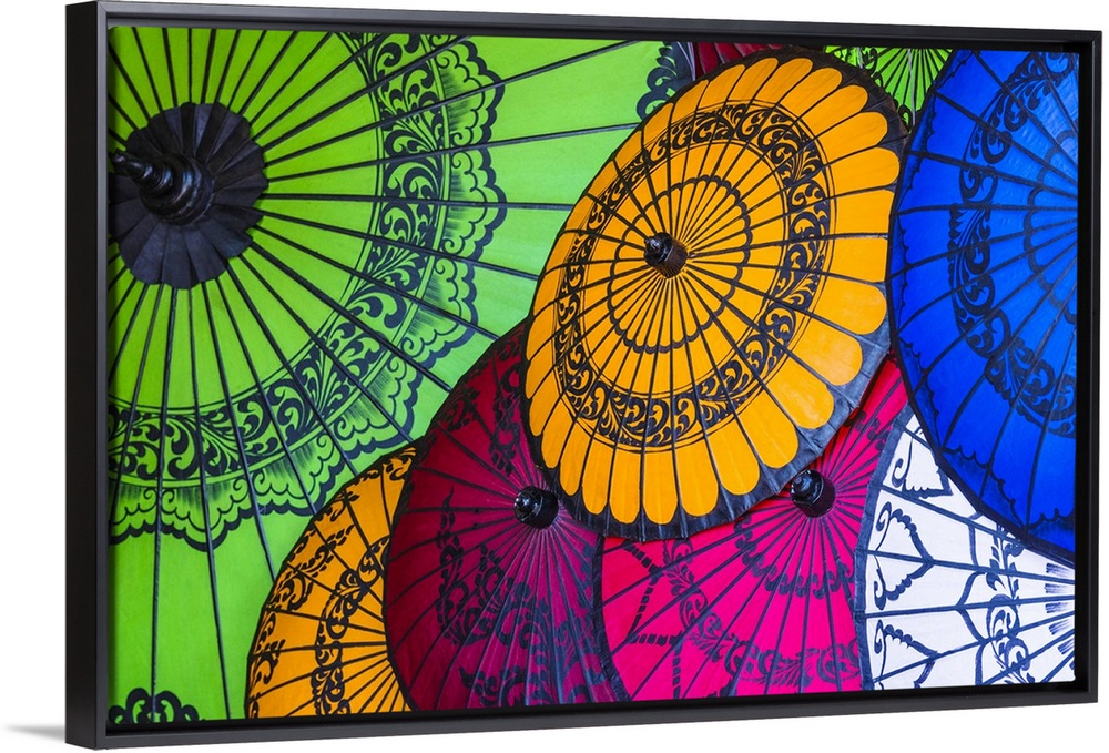 <p>Traditional Burmese umbrellas made of cotton and bamboo, Bagan, Mandalay region, Myanmar</p>