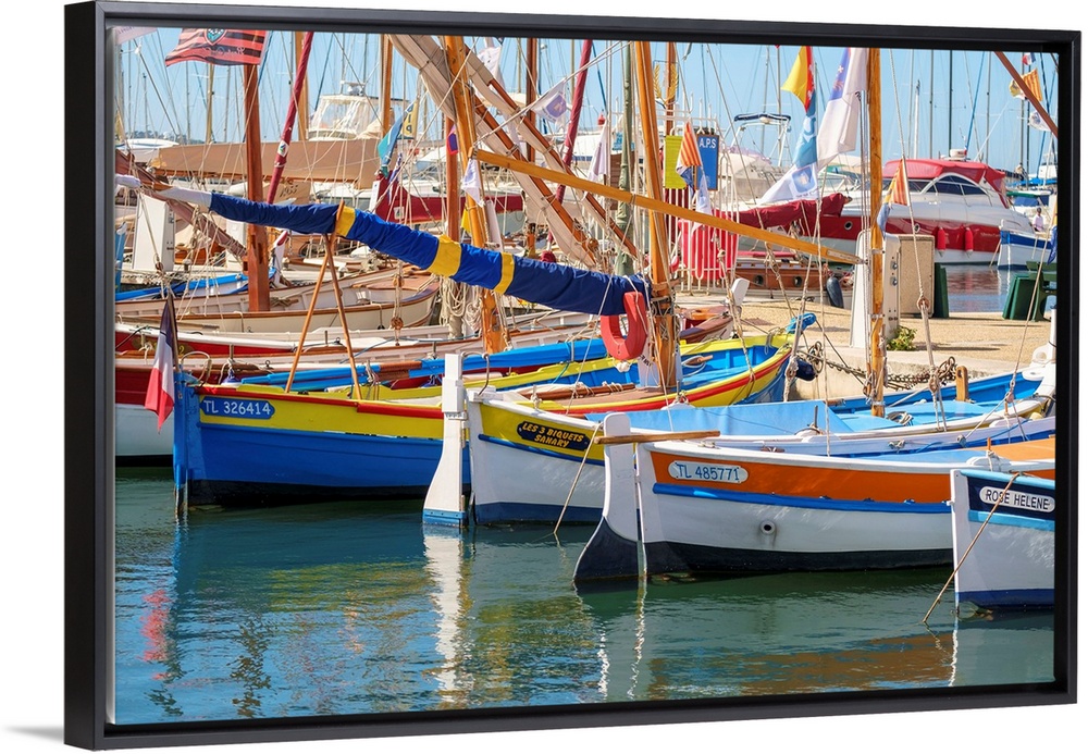 <p>Traditional colorful wooden fishing boat in the port harbor at Sanary-sur-Mer, Var department, Provence-Alpes-Cote d'Azur, France.</p>