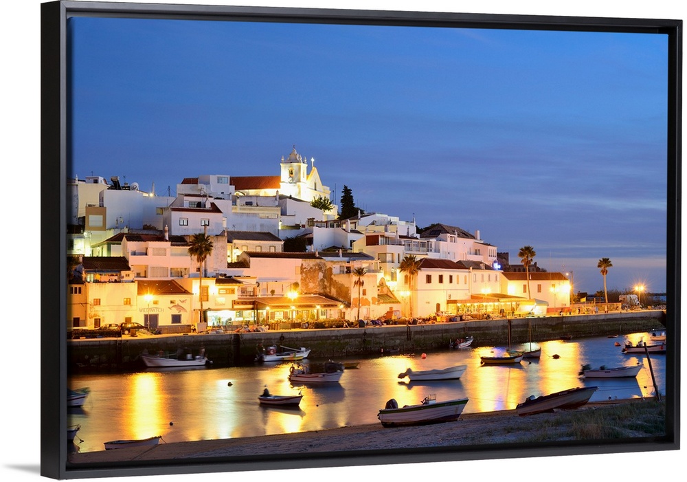 <p>The Traditional Fishing Village Of Ferragudo At Dusk, Bordering The Arade River. Algarve, Portugal</p>