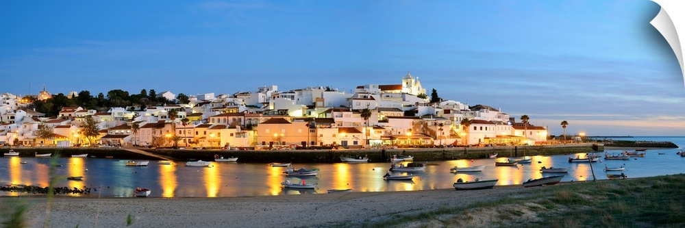 <p>The Traditional Fishing Village Of Ferragudo At Dusk, Bordering The Arade River. Algarve, Portugal</p>