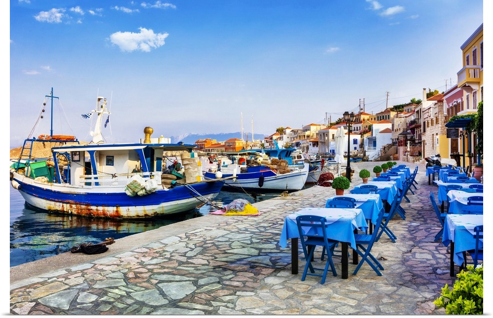 <p>Traditional Greece Series - Chalki Island With Old Boats And Taverna</p>