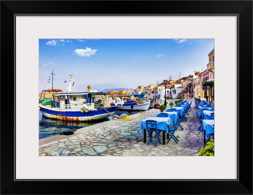 <p>Traditional Greece Series - Chalki Island With Old Boats And Taverna</p>