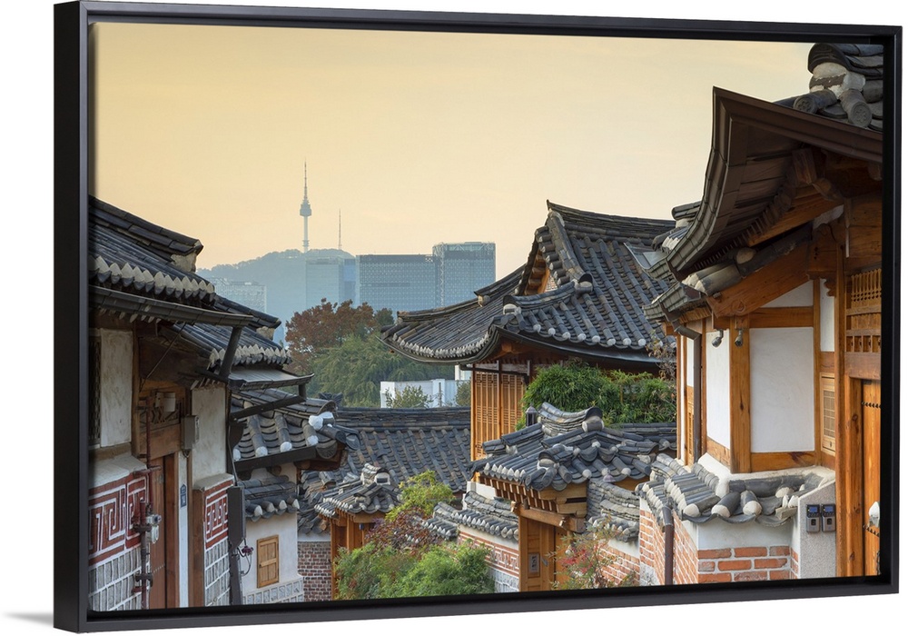 <p>Traditional houses in Bukchon Hanok village at sunrise, Seoul, South Korea</p>