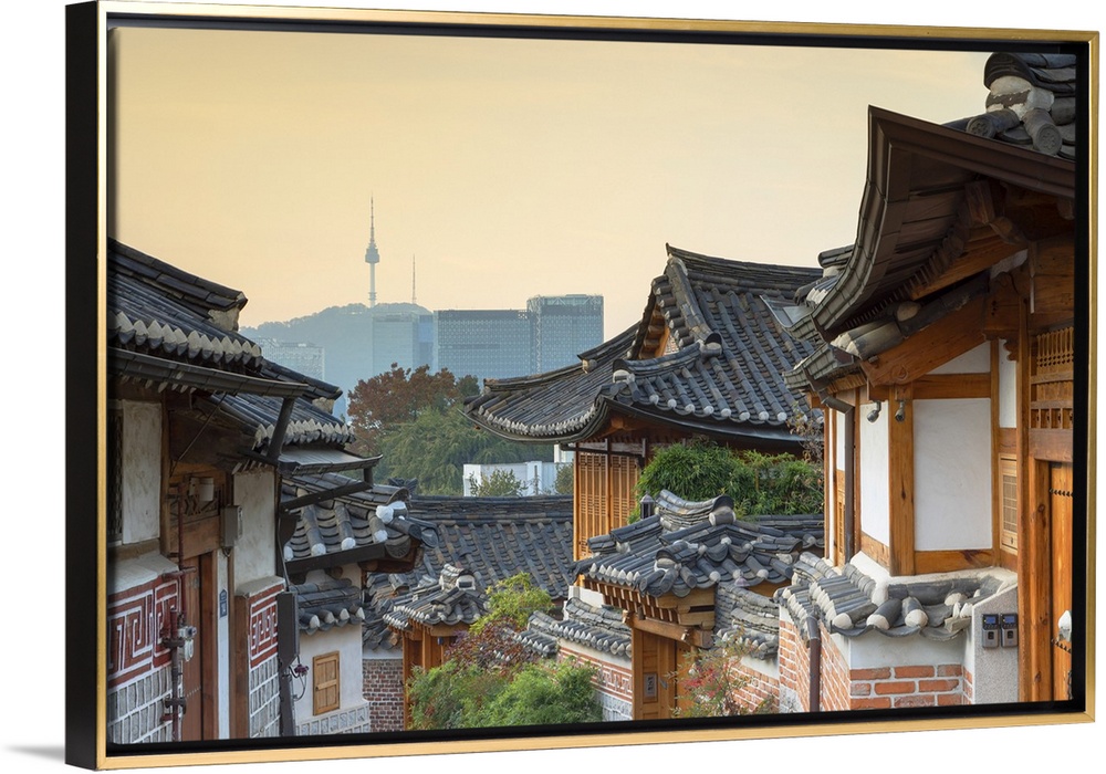 <p>Traditional houses in Bukchon Hanok village at sunrise, Seoul, South Korea</p>
