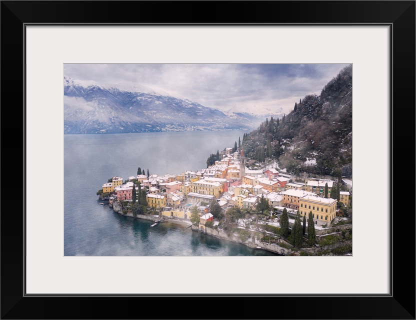 <p>Traditional houses of Varenna old town after a snowfall, Lake Como, Lecco province, Lombardy, Italian Lakes, Italy, Europe</p>