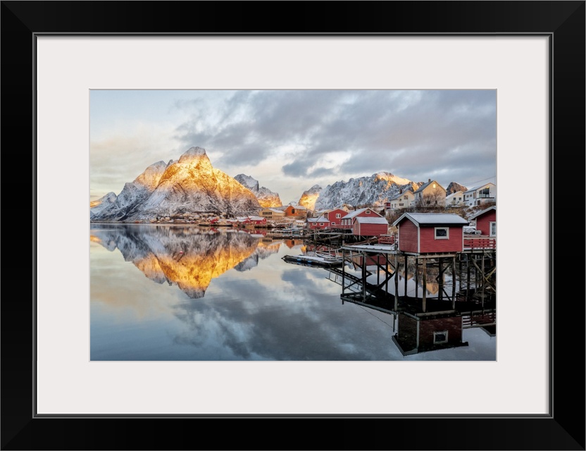 <p>Traditional red Rorbu cabins at dawn, Reine Bay, Nordland, Lofoten Islands, Norway</p>