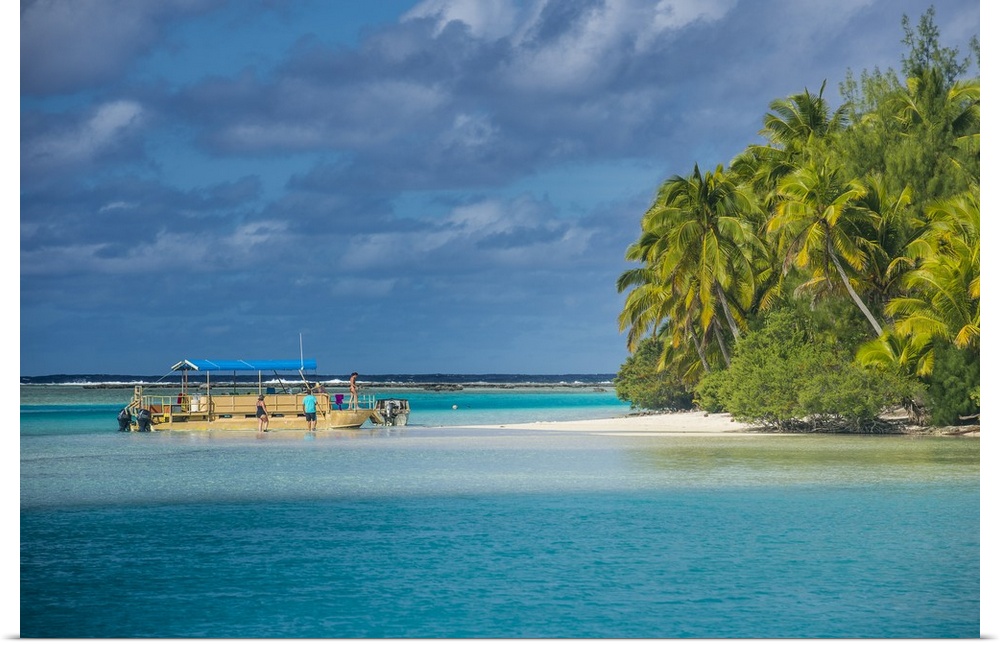 <p>Traditional wood carved boat in the Aitutaki lagoon, Rarotonga and the Cook Islands</p>