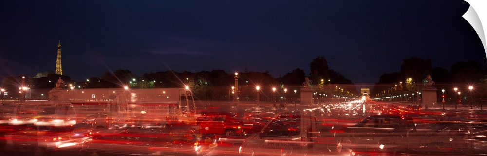 <p>Traffic on the road at night with a prison in the background, Conciergerie, Paris, Ile-de-France, France</p>