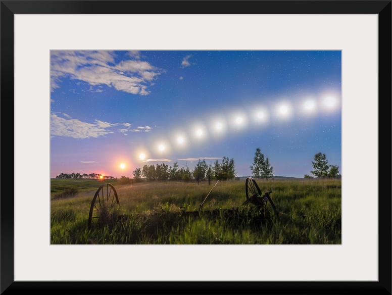 <p>Trail of the waning gibbous moon tracking low across the sky in Alberta, Canada.</p>