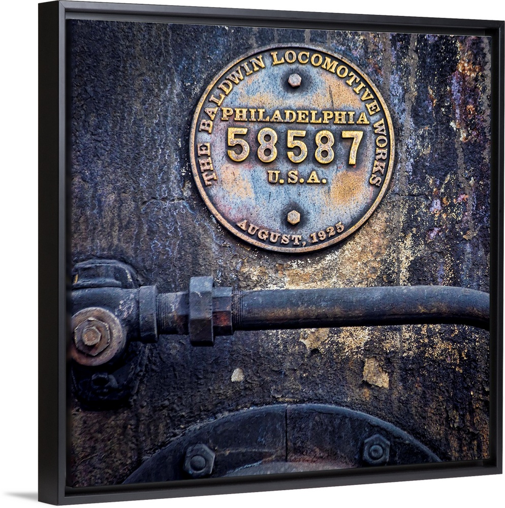 <p>Photograph of weathered detail from a vintage train locomotive.</p>