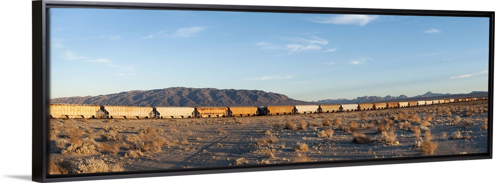 <p>Train moving on railroad track, Trona, San Bernardino County, California, USA</p>