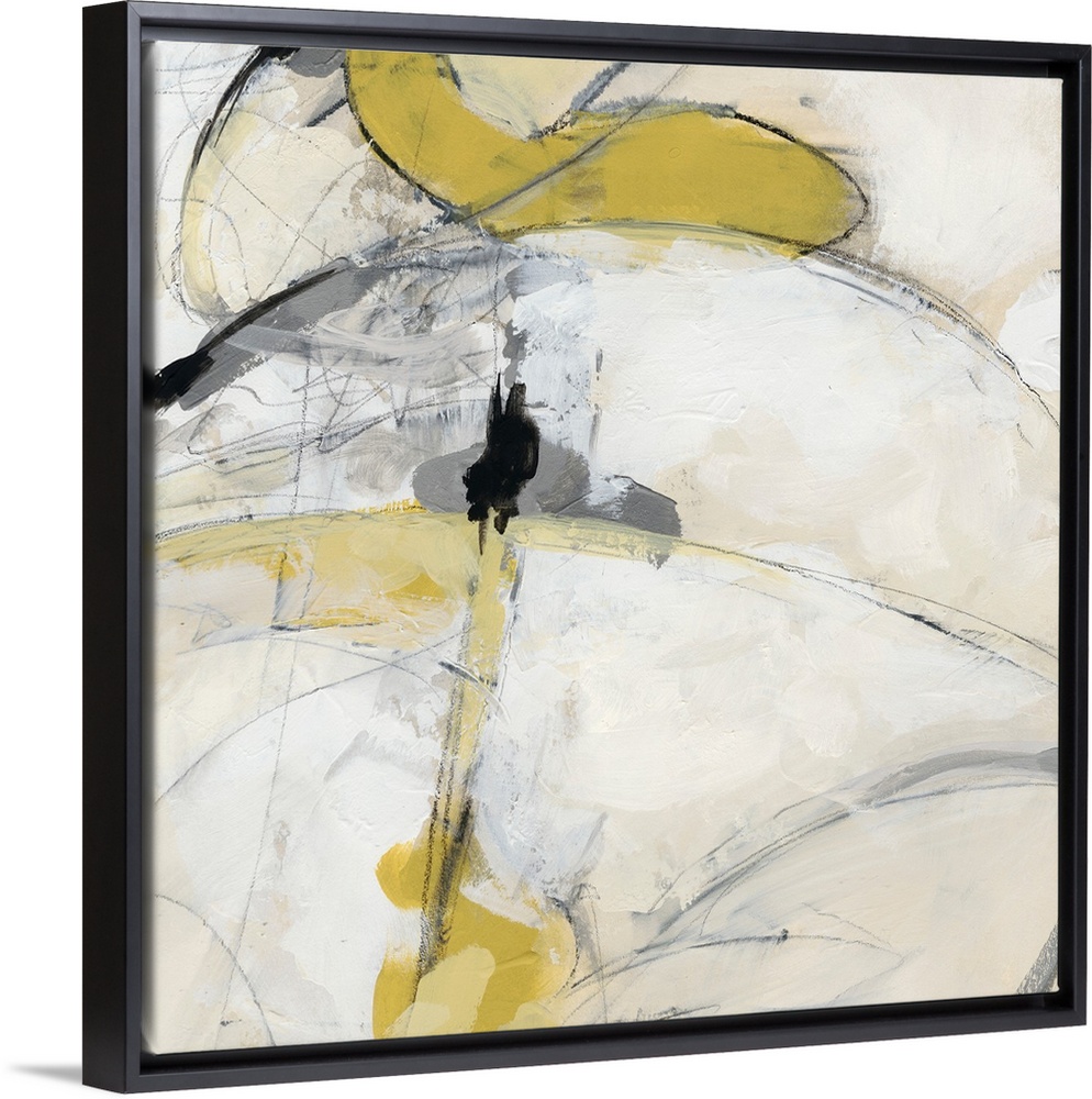 <p>Energetic yellow brush strokes and gestural lines illustrate the dynamism in this contemporary artwork.</p>