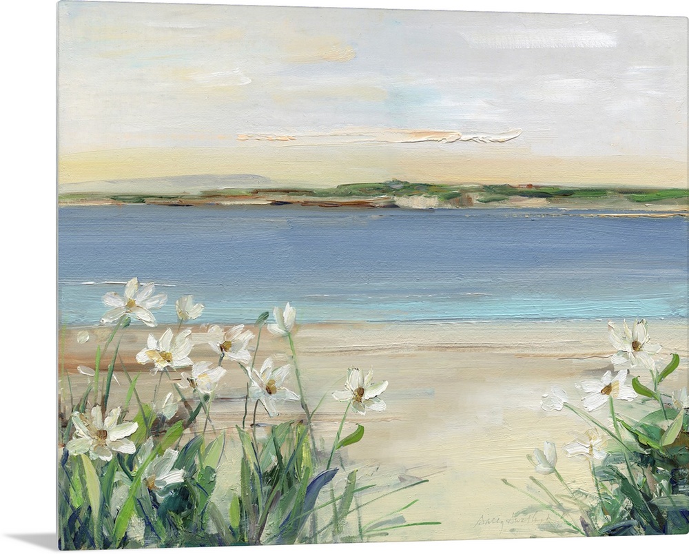<p>Warm sand settling under your toes, crystal blue waves crashing softly in your ears, fresh ocean breezes sweeping your hair, warm sun on your skin—somehow art by Sally Swatland manages to capture what a day at the beach really feels like. Somewhere between her bright sandy whites, deep aquatic blues, and vibrant grassy greens, her seaside landscapes bring that perfect calming beach vibe into any room. Like holding a seashell to your ear to hear the ocean, looking into one of her paintings is like looking through a window to see the perfect beach scene. From the soft whisper of fresh blossoms or the bright pop of a sun-kissed shoreline, Sally Swatland’s wall art captures a piece of summer to keep all year round.</p>