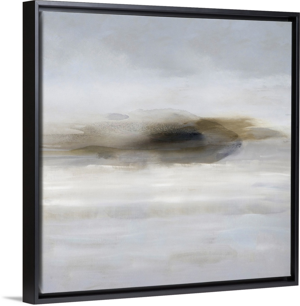 <p>Contemporary abstract artwork in soft gray and tan colors with flowing, moving shapes.</p>