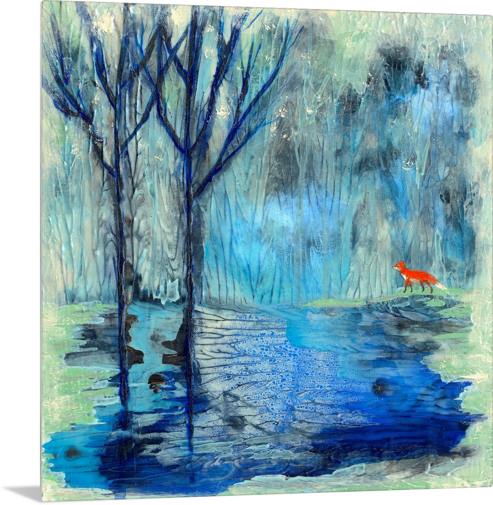 Art Wyanne Art Blue Wall Art Contemporary Art Landscapes Lake Trees Fox