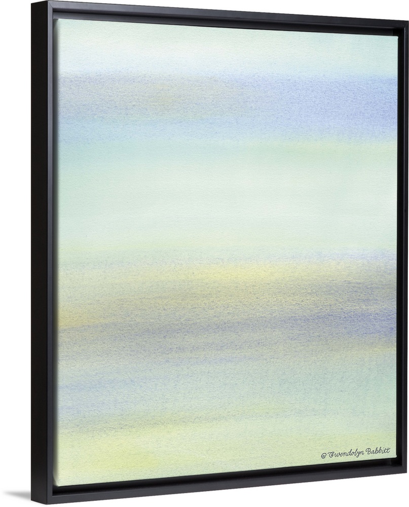 <p>Abstract watercolor painting in pale tranquil blue, green, purple, and yellow hues.</p>
