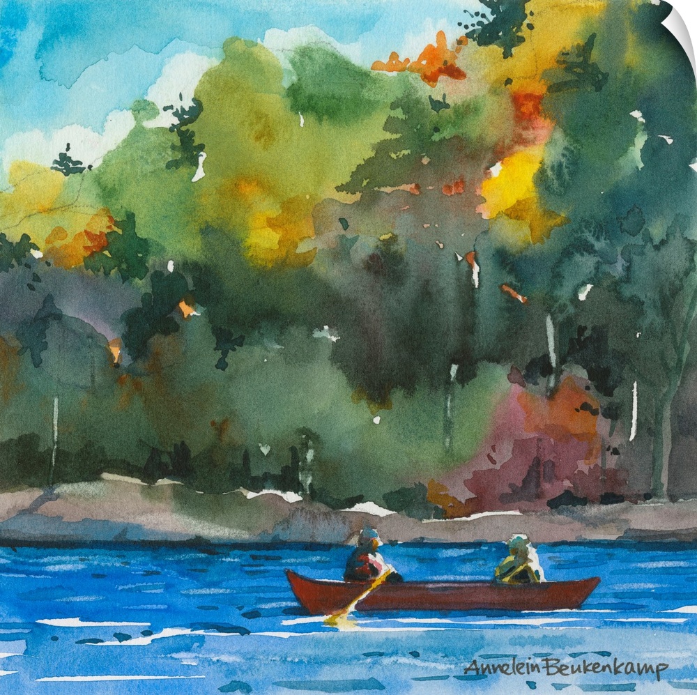 Art Annelein Beukenkamp Contemporary Art Rivers, Lakes, and Oceans Landscapes River, Creek and Stream Trees Forest Painting Transportation Boat Rowboat Watercolor