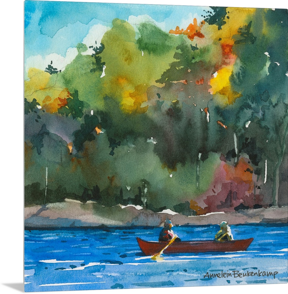 Art Annelein Beukenkamp Contemporary Art Rivers, Lakes, and Oceans Landscapes River, Creek and Stream Trees Forest Painting Transportation Boat Rowboat Watercolor