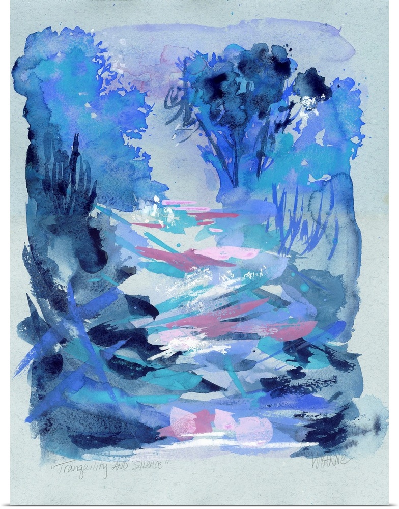 Art Wyanne Art Blue Wall Art Contemporary Art Landscapes River, Creek and Stream Painting Watercolor